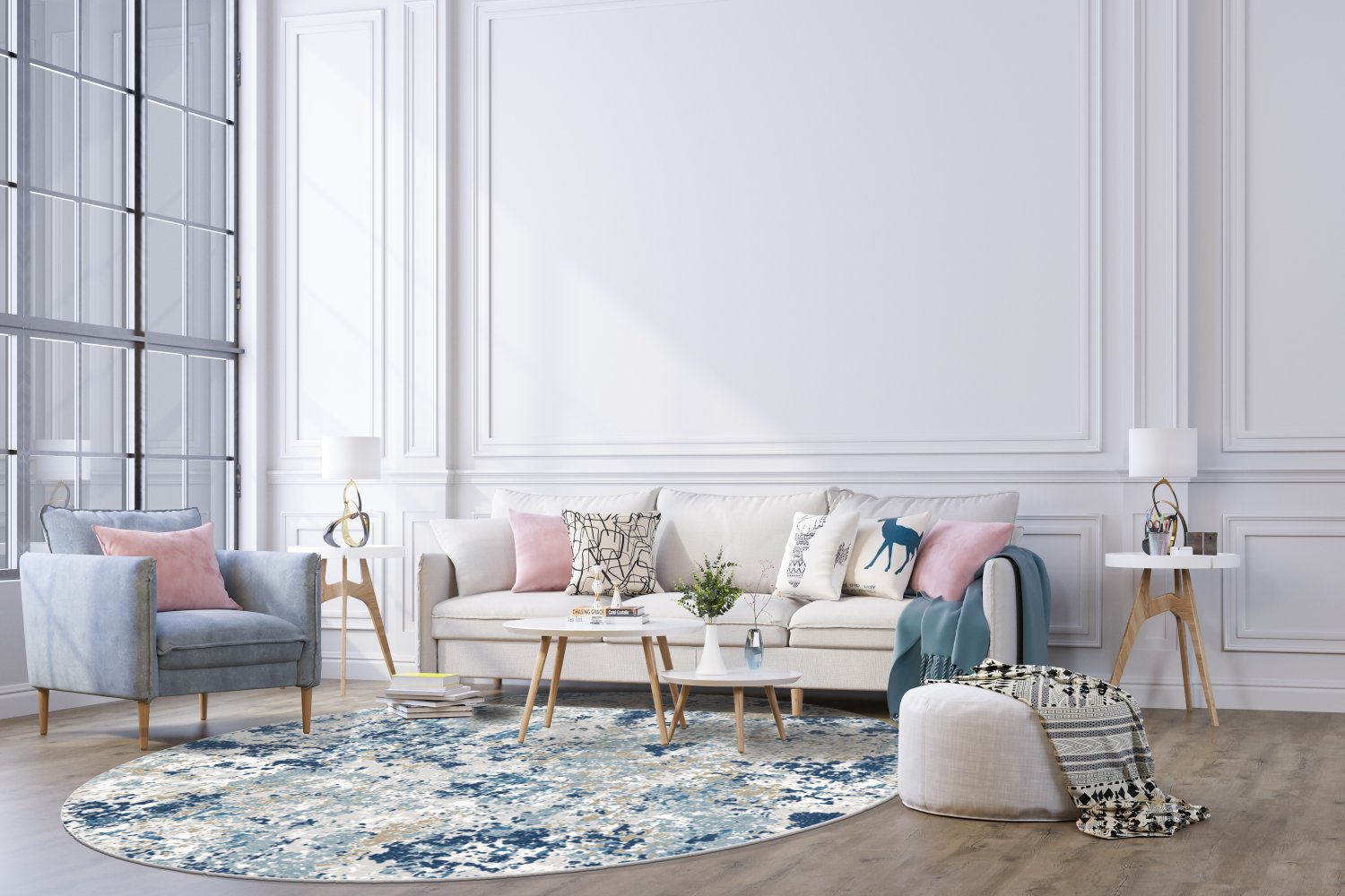 Rond vloerkleed - Hiboun (blauw)