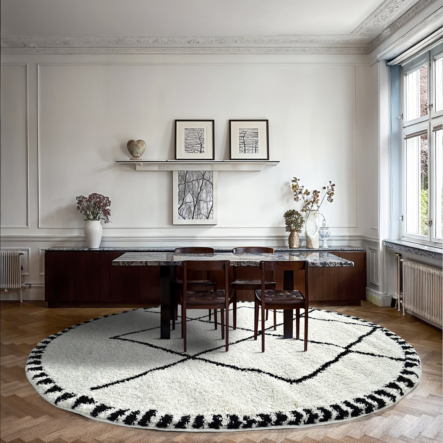Ronde vloerkleden - Tiznit (wit/zwart)