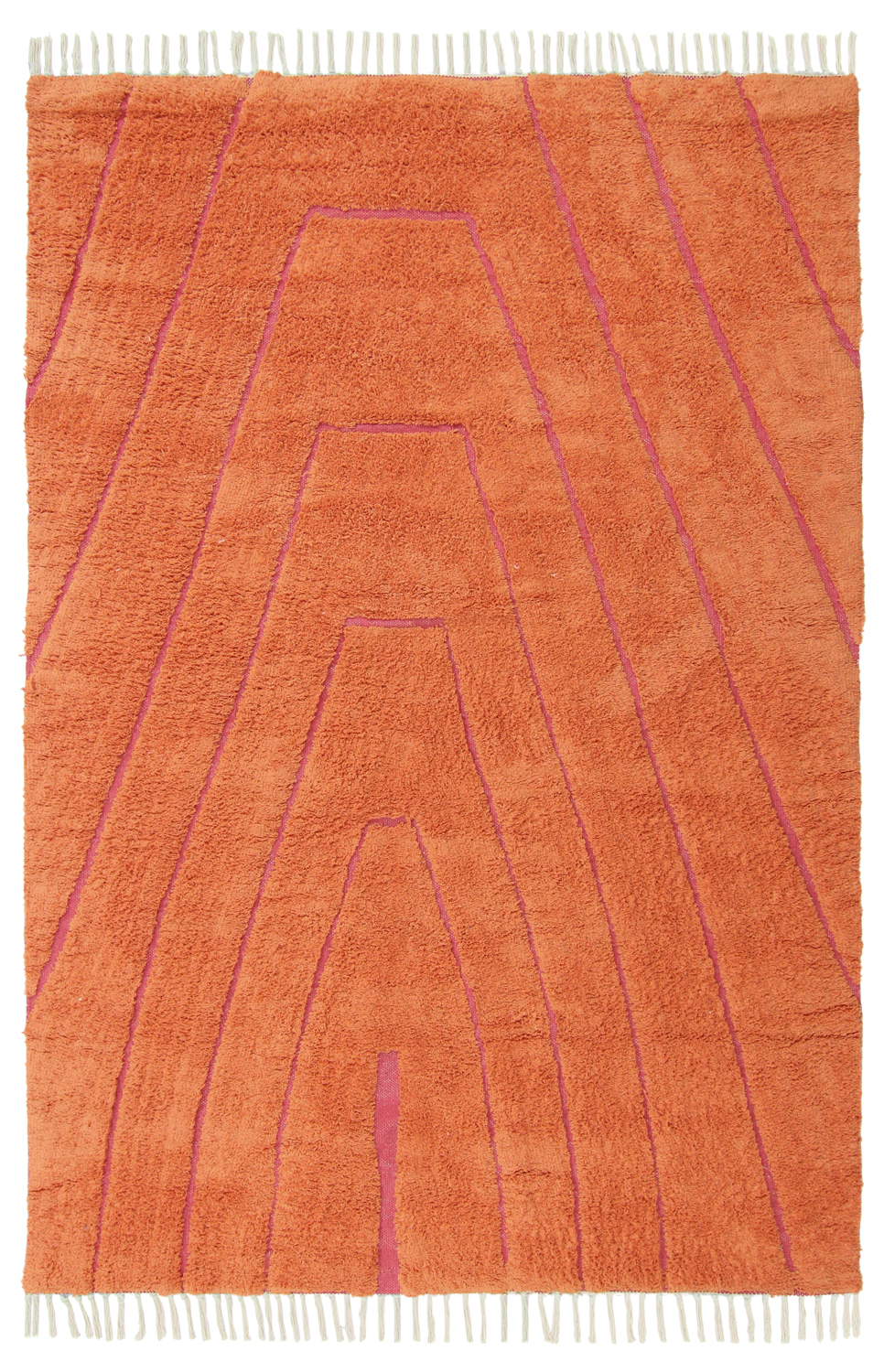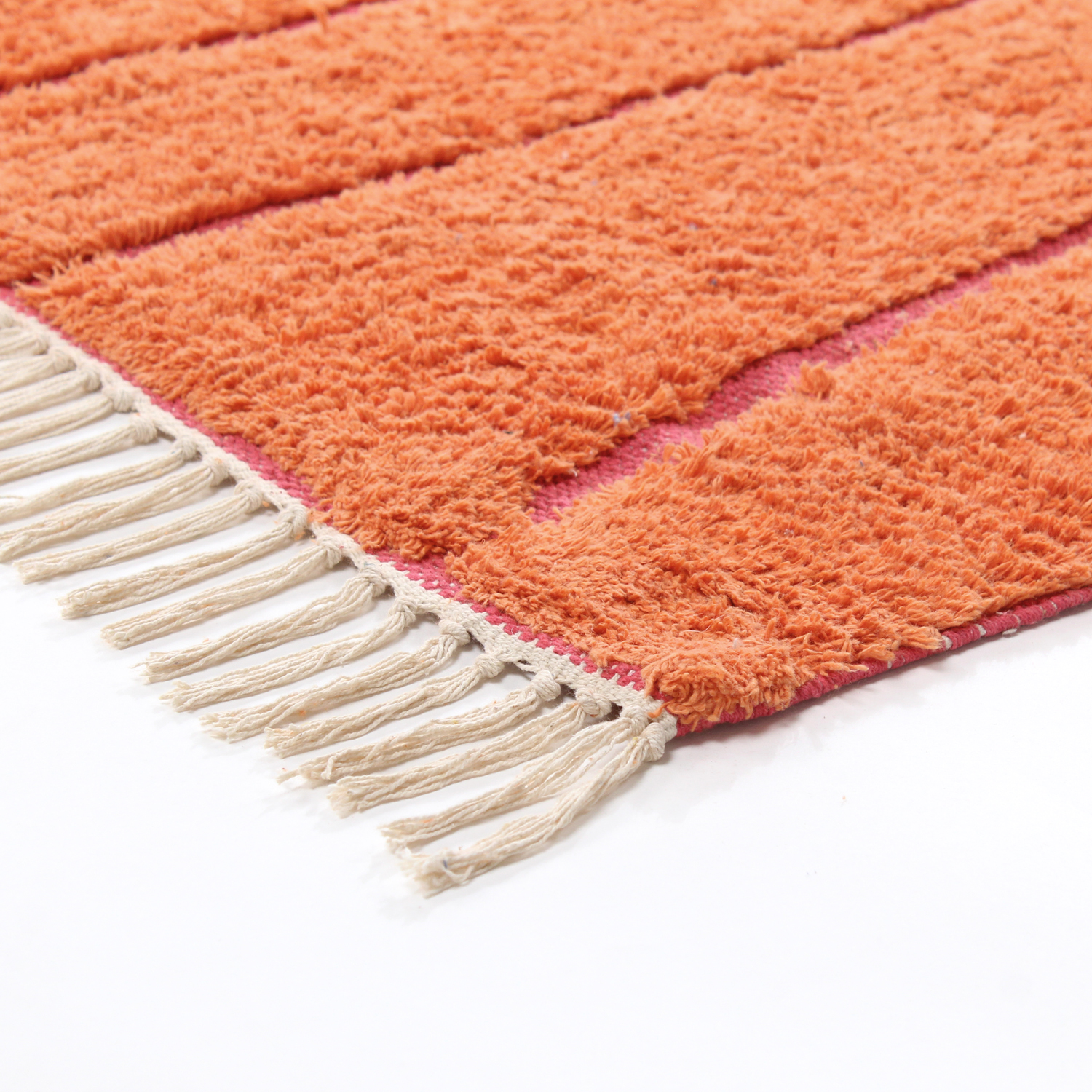 Hoogpolig vloerkleed - Sivia Natural Cotton Shaggy (rood/oranje)