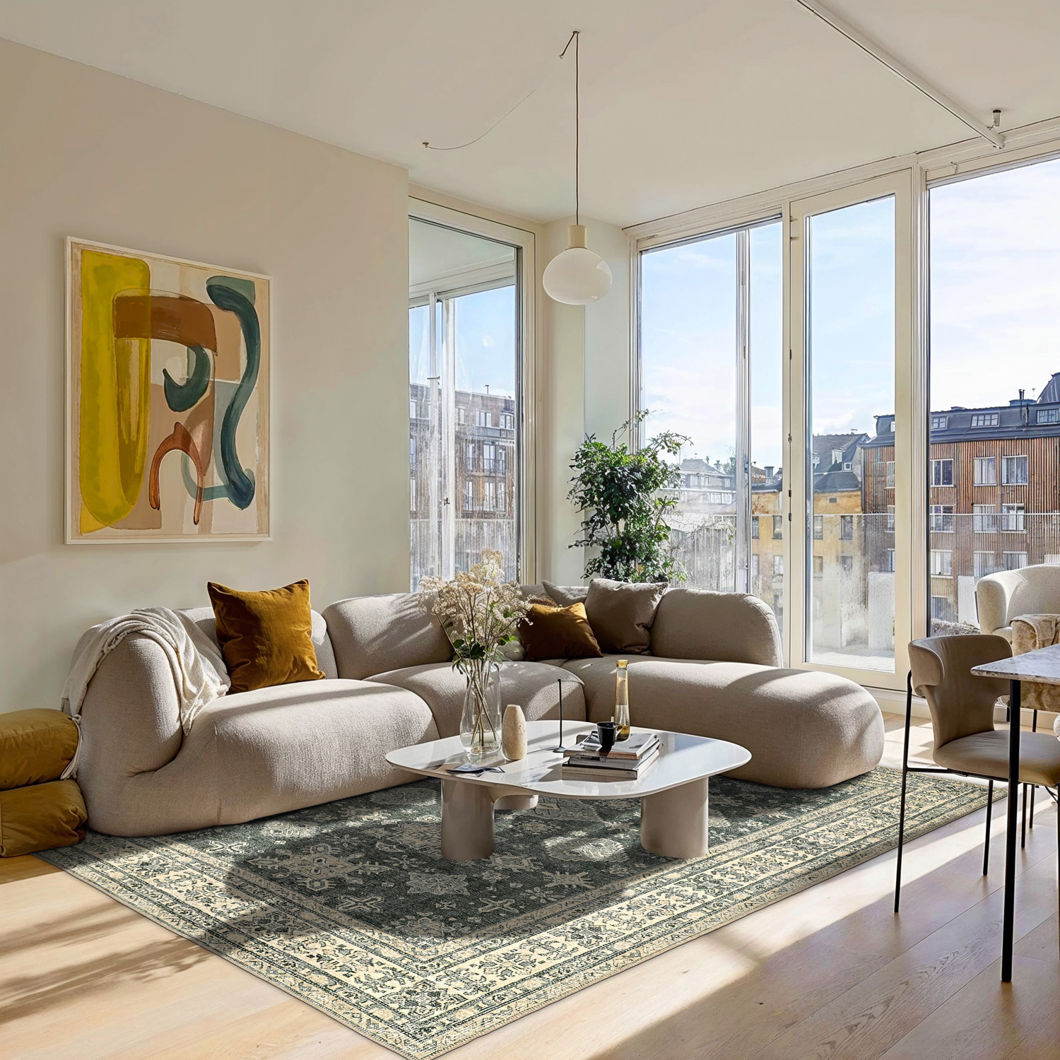 Creëer een tijdloze sfeer in huis met dit vlakgeweven vloerkleed in elegante vintage-stijl. Het duurzame en dunne ontwerp maakt het kleed gemakkelijk te plaatsen en te onderhouden, terwijl het prachtig verouderde patroon warmte en karakter aan de kamer geeft. Perfect onder de eettafel, in de woonkamer of in de hal – een kleed dat praktische functionaliteit combineert met klassiek design.
