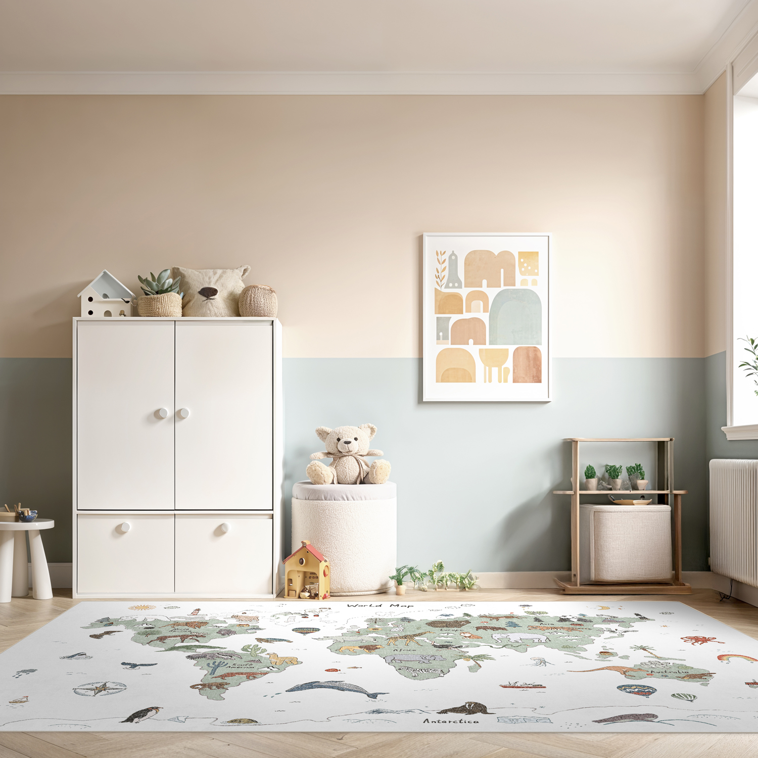Kindervloerkleed - Kids World Map (groen)