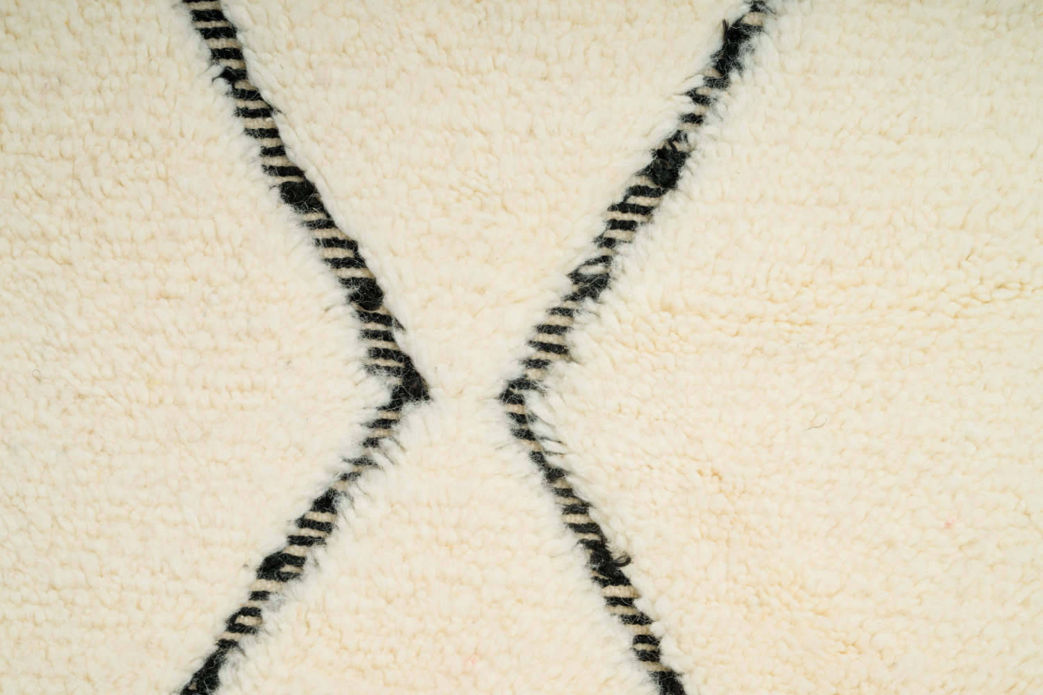 De wol van de schapen in het Atlasgebergte is werkelijk ongeëvenaard en een Beni Ourain-tapijt wordt uitsluitend gemaakt van deze pure wol in zijn natuurlijke kleuren. Een authentiek Beni Ourain-tapijt is geweven met eenvoudige en verfijnde patronen, waardoor het zeer gewild is bij ontwerpers en consumenten wereldwijd. Een Marokkaans Beni Ourain-tapijt is een kunstwerk voor de vloer. Als het met zorg wordt behandeld, behoudt het tapijt zijn mooie kleuren en slijt de wol niet. Een tapijt om door te geven aan de volgende generaties.