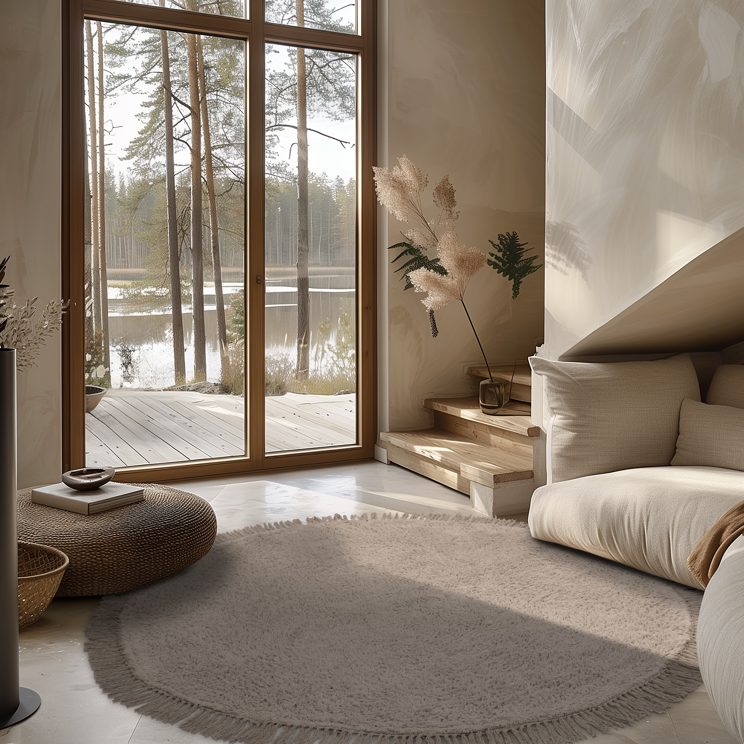 Ronde vloerkleden - Alba Natural Cotton Shaggy (taupe)