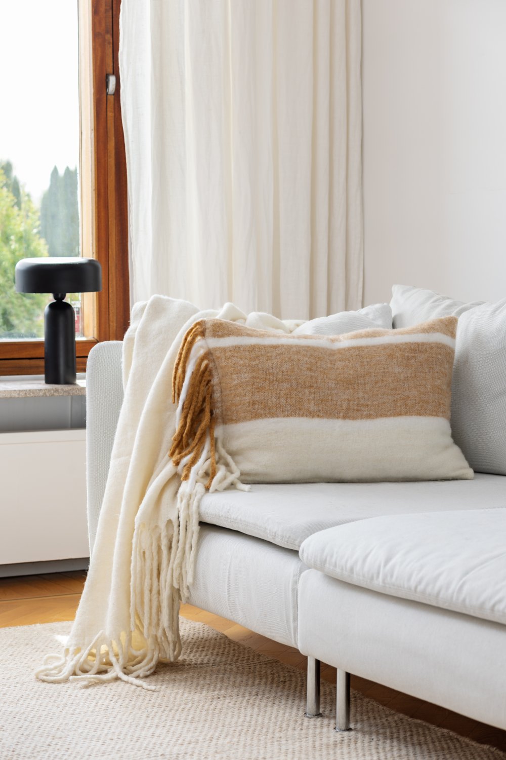 Afmeting: 40 cm x 60 cm, exclusief de franjes.