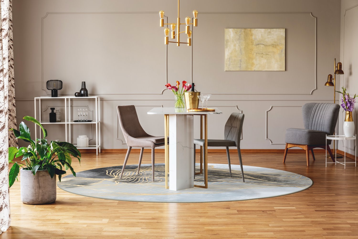 Rond vloerkleed - Ekual (blauw/grijs/goud)