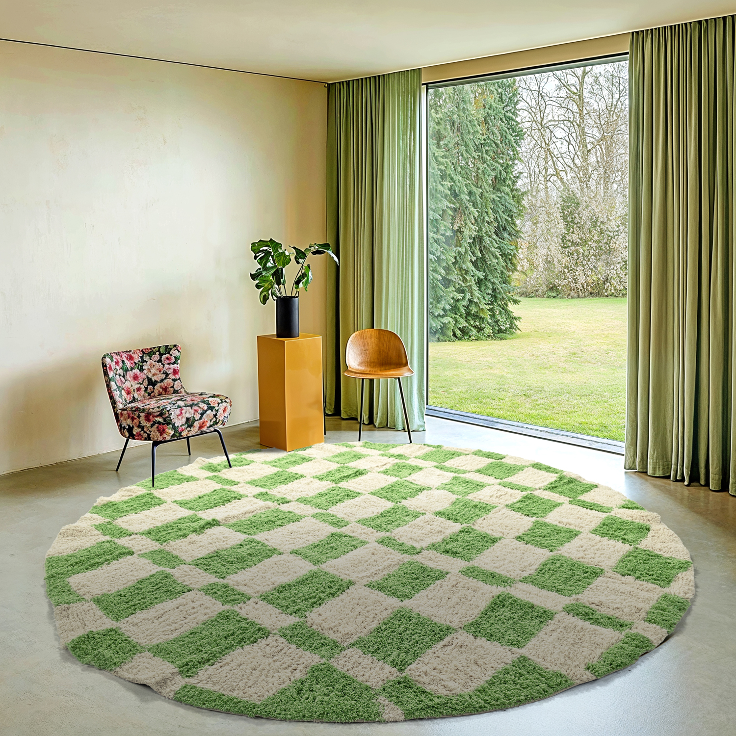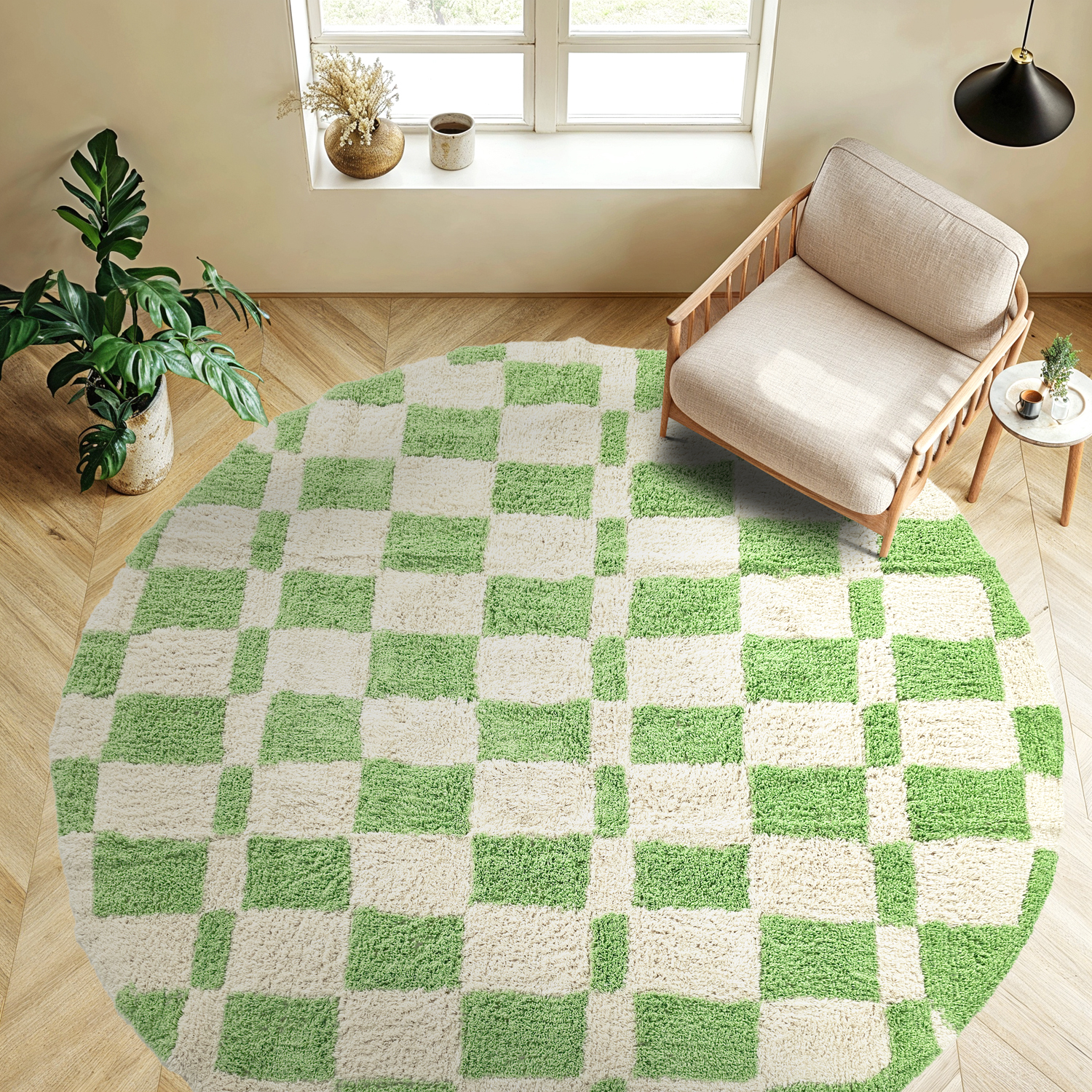 Rond vloerkleed - Maranello Natural Cotton Shaggy (groente)