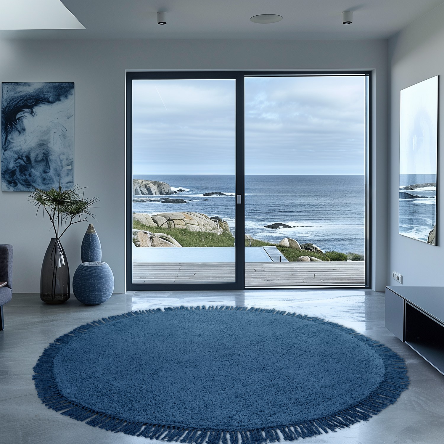 Ronde vloerkleden - Alba Natural Cotton Shaggy (blauw)