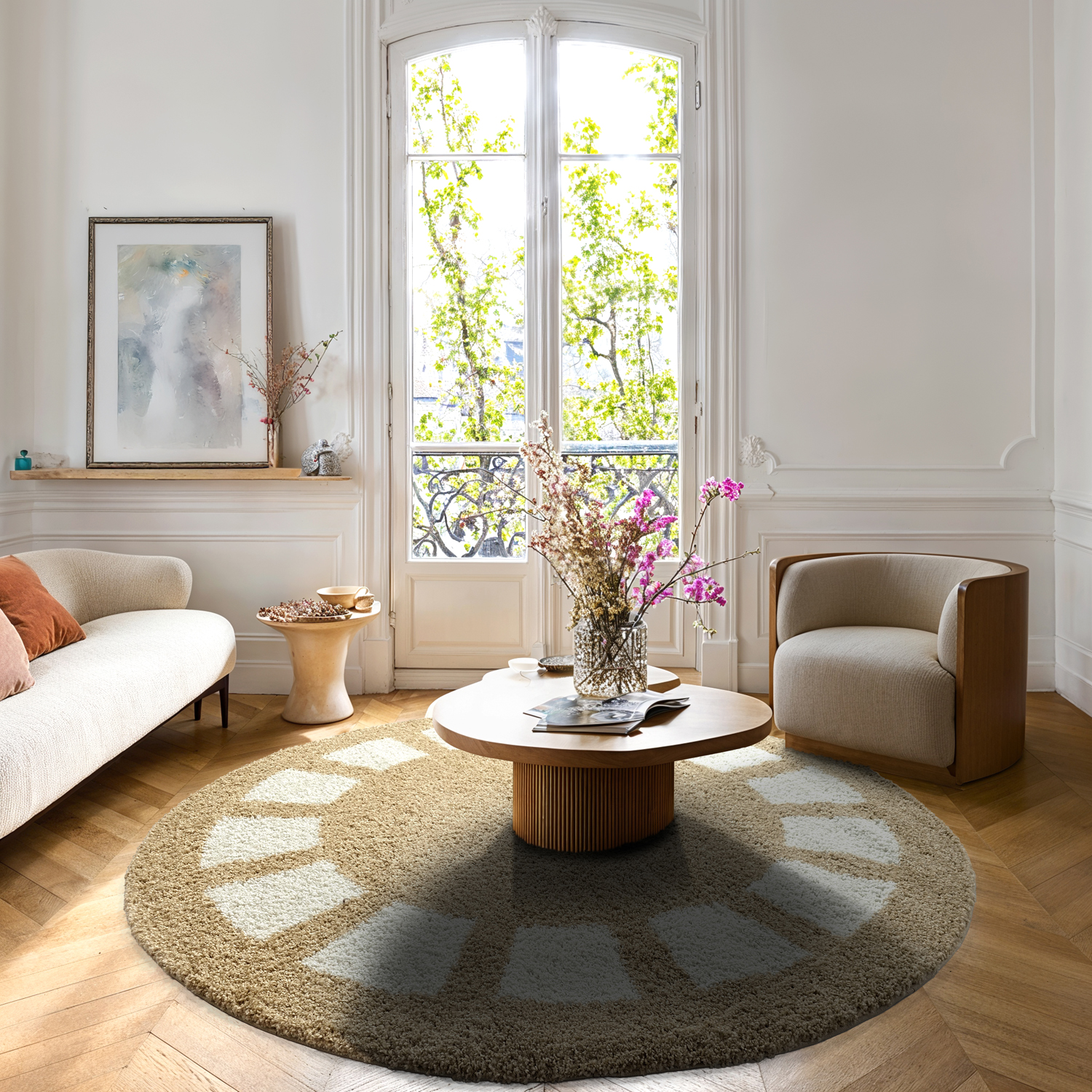 Ronde vloerkleden - Asilah (beige/wit)