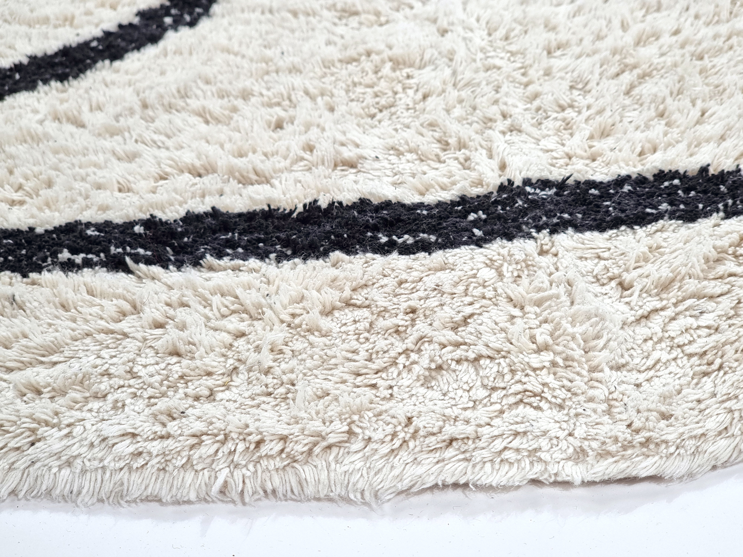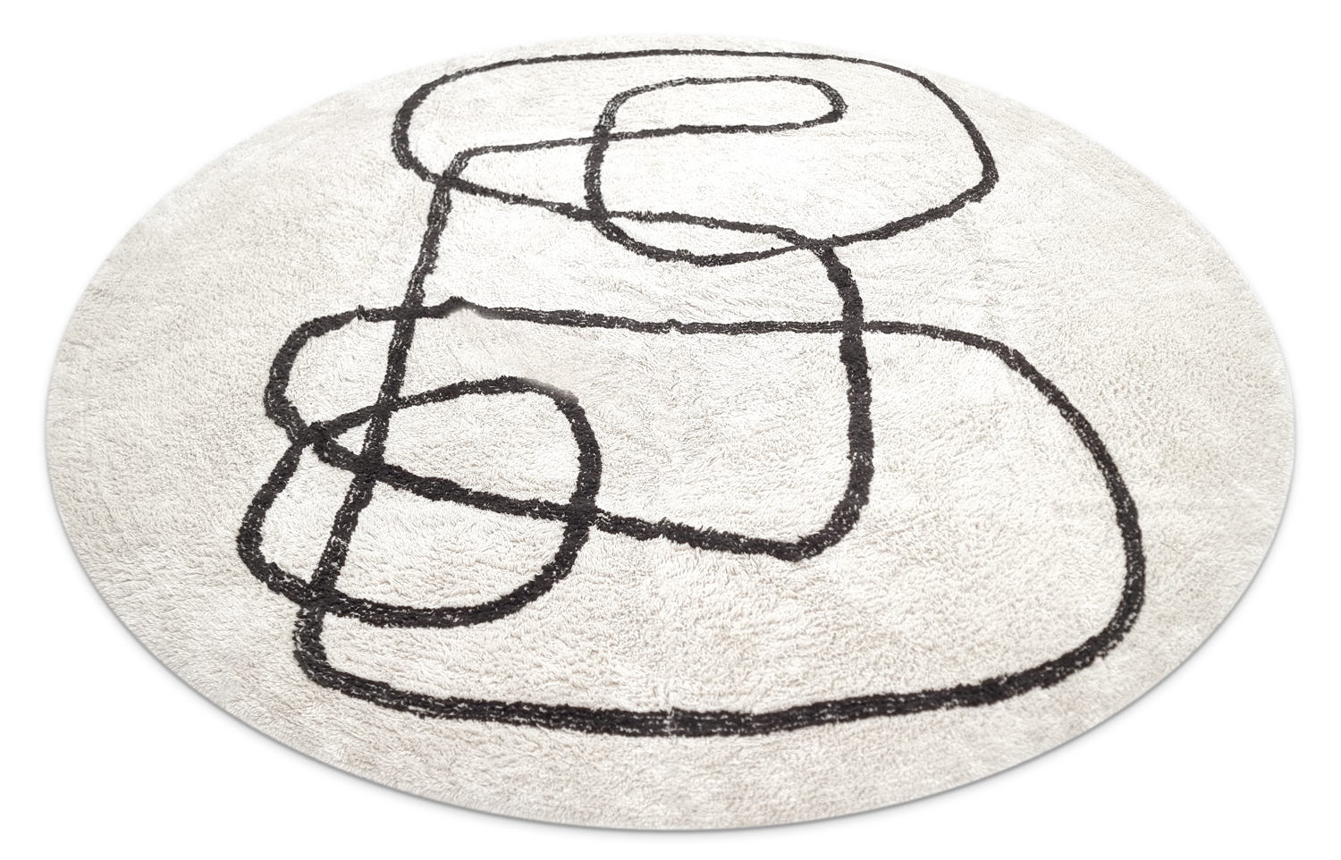 Ronde vloerkleden - Bavello Natural Cotton Shaggy (offwhite/zwart)