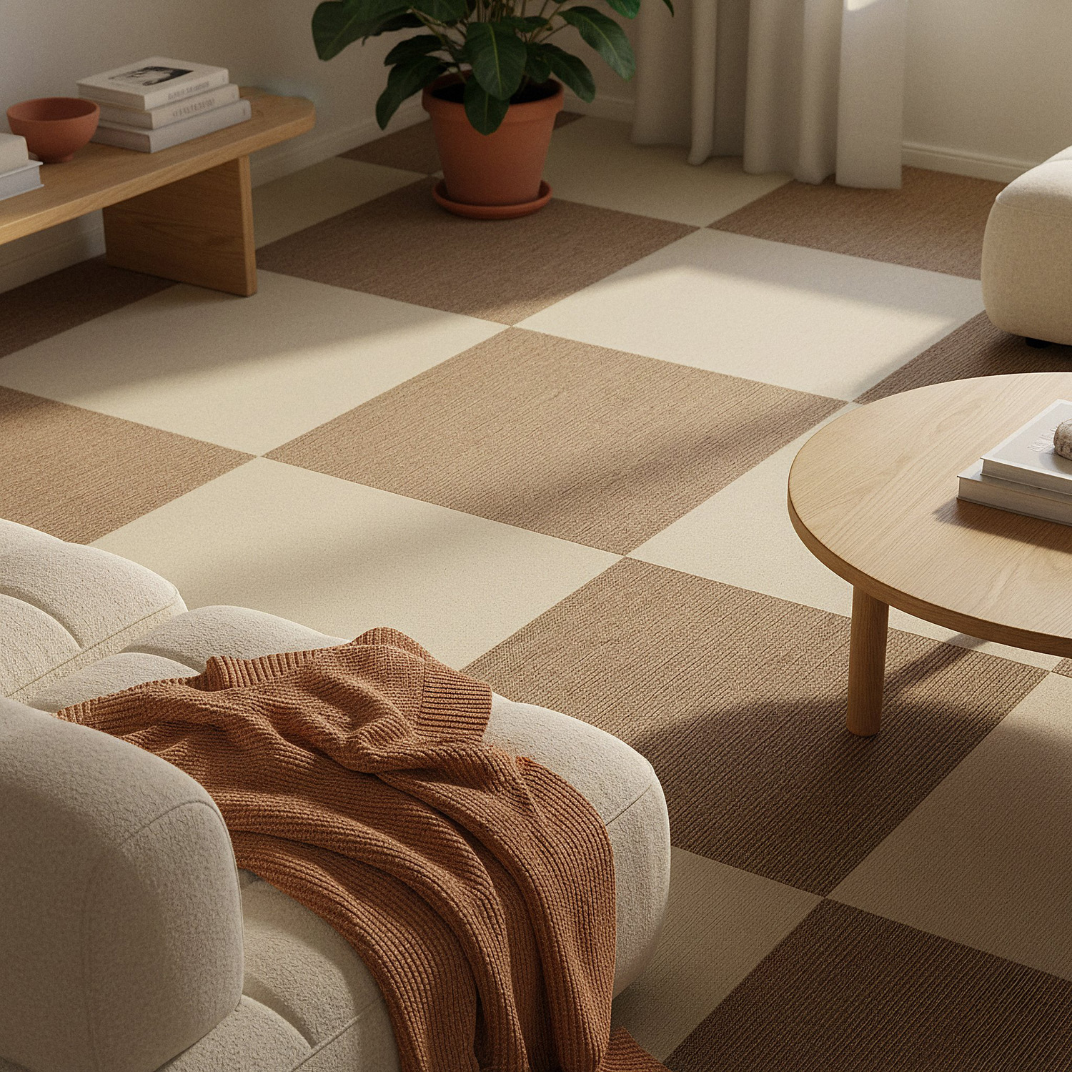 Tapijttegels zijn een eenvoudige manier om een zachte, duurzame en gezellige vloer te creëren. Ze worden naadloos naast elkaar gelegd en kunnen los worden geplaatst of met dubbelzijdige tape worden bevestigd. Met meerdere kleuren kunt u kiezen voor een uniforme stijl of ruit-, streep- en persoonlijke patronen maken. Makkelijk op maat te snijden – perfect voor zowel thuis als openbare ruimtes.