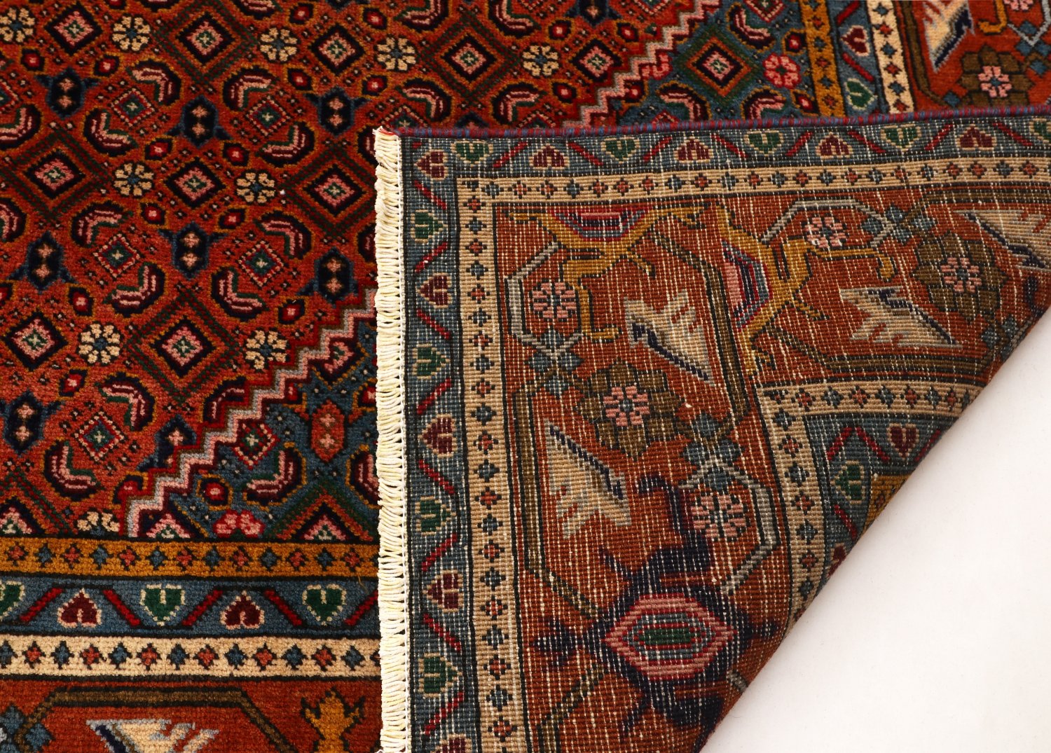 Elk kleed wordt met de hand geknoopt van zorgvuldig geselecteerde wol en afgewerkt met een egale pool voor een uitgebalanceerde, tijdloze look. Kleuren variëren van warme rood‑ en blauwtinten tot ingetogen natuurkleuren, waardoor Hamedan‑kleden passen in zowel minimalistische als klassieke interieurs.