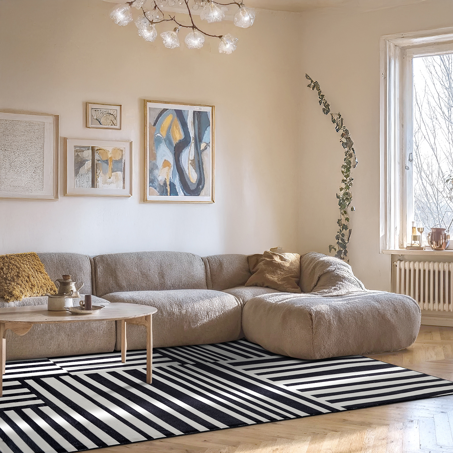Moderne vloerkleed uit de Trendcarpet Art Line – nu in een verbeterde versie met extra dikte en gewicht, wat zorgt voor een zachter en steviger gevoel onder de voeten. Perfect voor de woonkamer of een andere ruimte waar het kleed de aandacht mag trekken en het interieur versterkt.