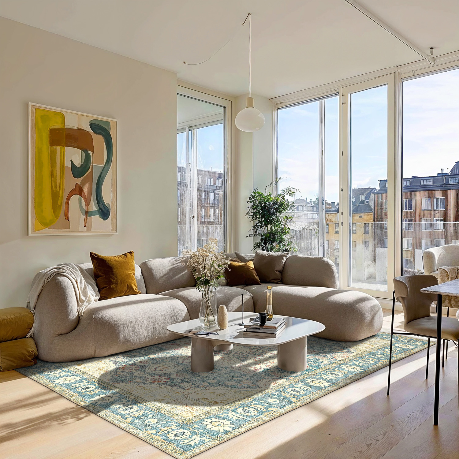 Creëer een tijdloze sfeer in huis met dit vlakgeweven vloerkleed in elegante vintage-stijl. Het duurzame en dunne ontwerp maakt het kleed gemakkelijk te plaatsen en te onderhouden, terwijl het prachtig verouderde patroon warmte en karakter aan de kamer geeft. Perfect onder de eettafel, in de woonkamer of in de hal – een kleed dat praktische functionaliteit combineert met klassiek design.