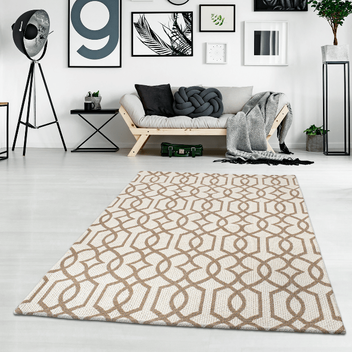 Modern tapijt, dat onderdeel uitmaakt van de Trendcarpet Art Line. Kan gebruik worden als woonkamertapijt of in een andere kamer waar het tapijt de aandacht krijgt die het verdient. Een katoen-tapijt dat geïnspireerd door designs van hedendaagse en moderne patronen. De kwaliteit is erg hoog en de prijs laag aangezien het tapijt machinaal geweven is, wat betekent dat de prijs van het tapijt lager is dan wanneer het tapijt met de hand gemaakt is.