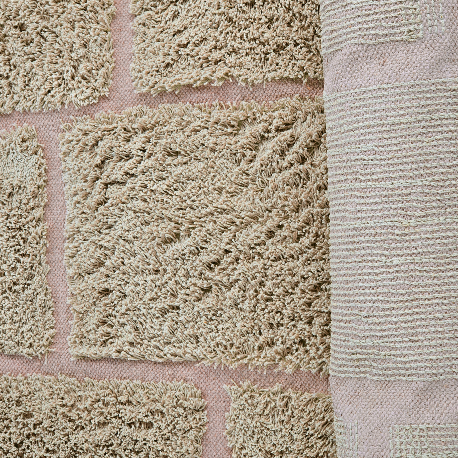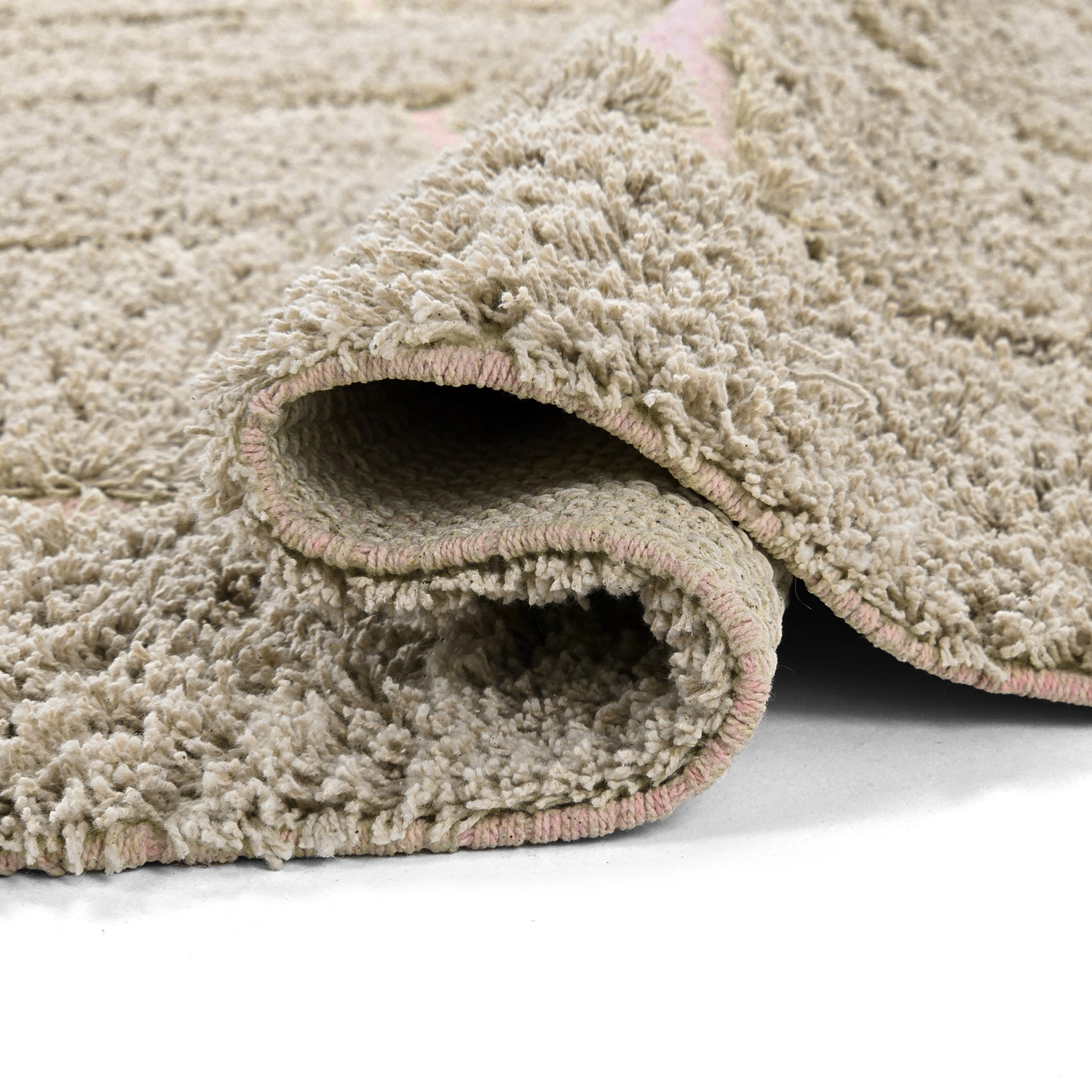 Hoogpolig vloerkleed - Lindley Natural Cotton Shaggy (beige/roze)