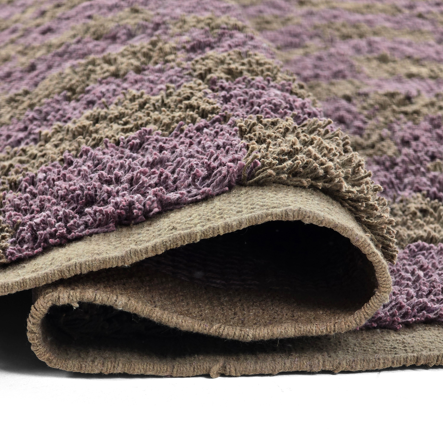 Hoogpolig vloerkleed - Elsey Natural Cotton Shaggy (bruin/paars)