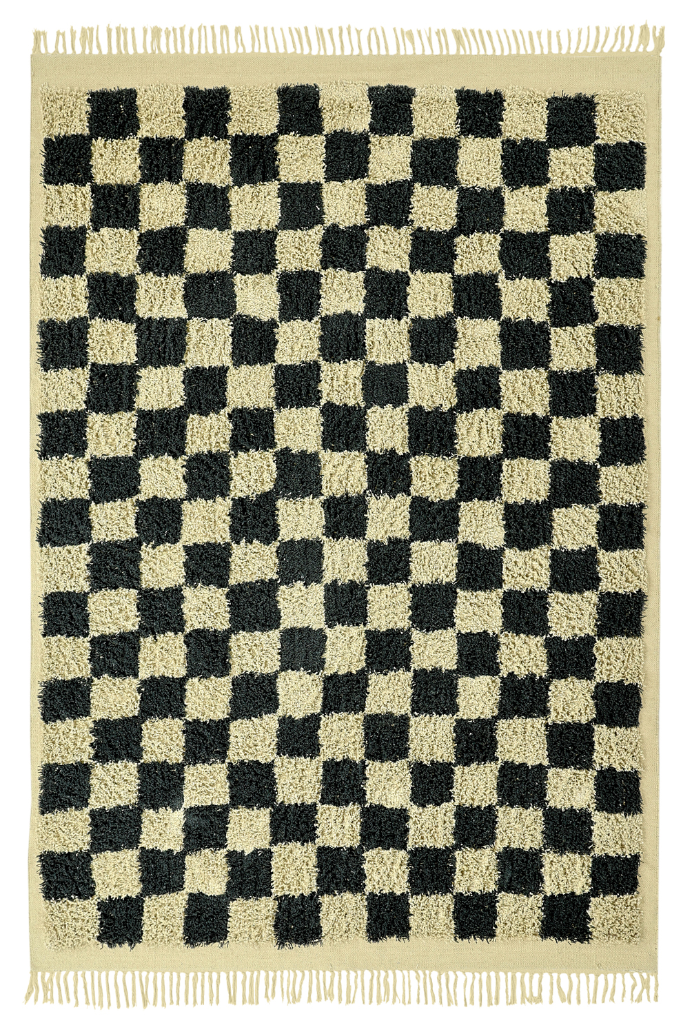 Hoogpolig vloerkleed - Elsey Natural Cotton Shaggy (zwart/beige)