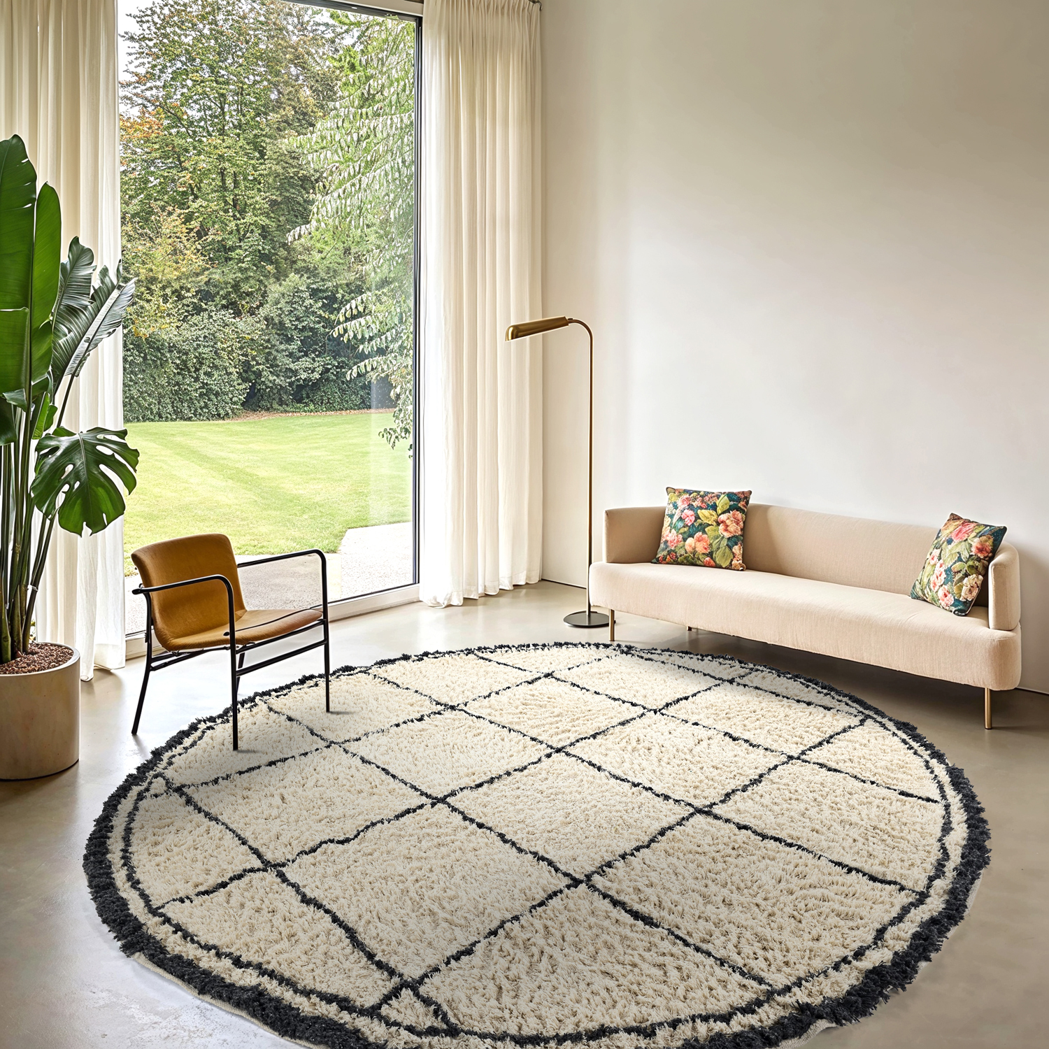 Rond vloerkleed - Lana Natural Cotton Shaggy (crème/donkergrijs)