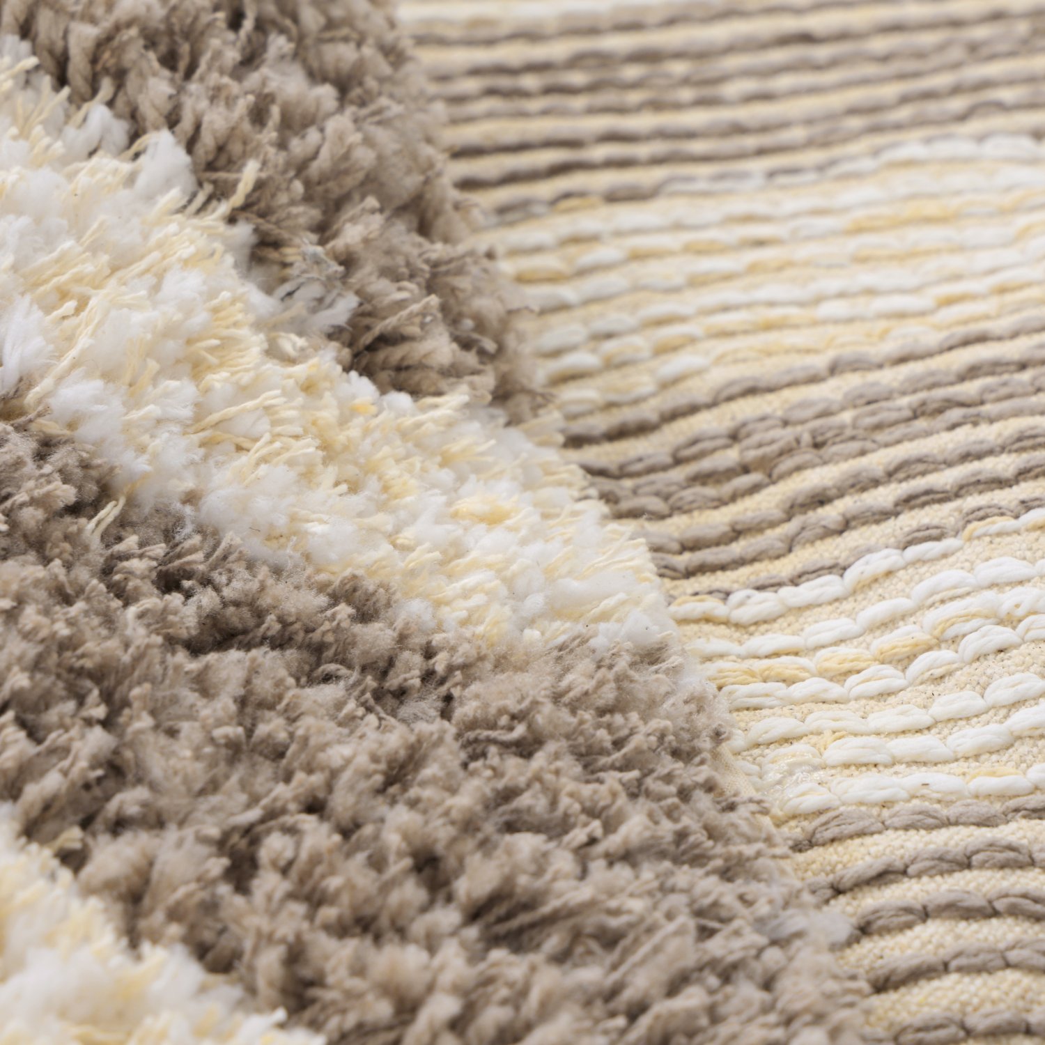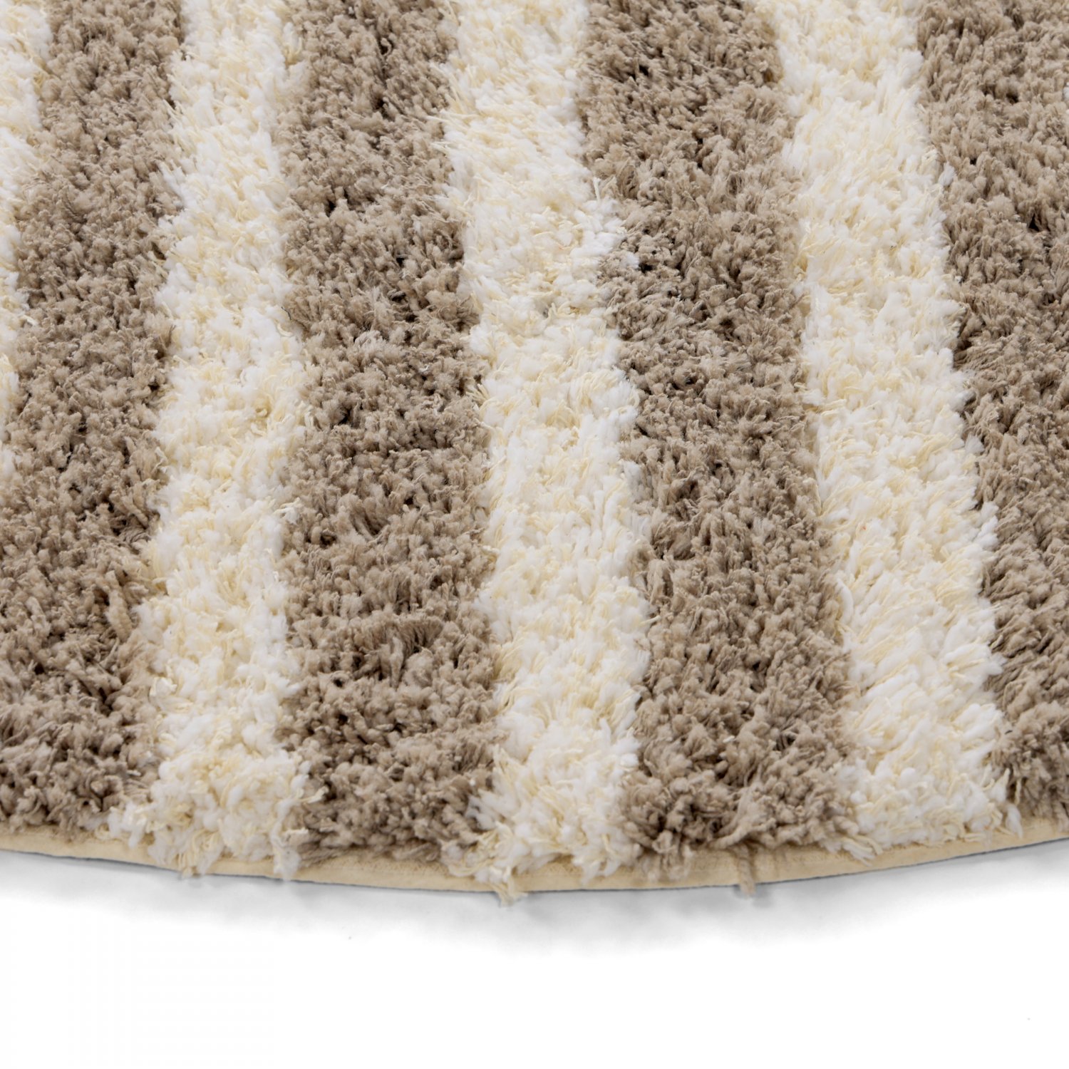 Rond vloerkleed - Thira Stripe Cotton Shaggy (crème/taupe)