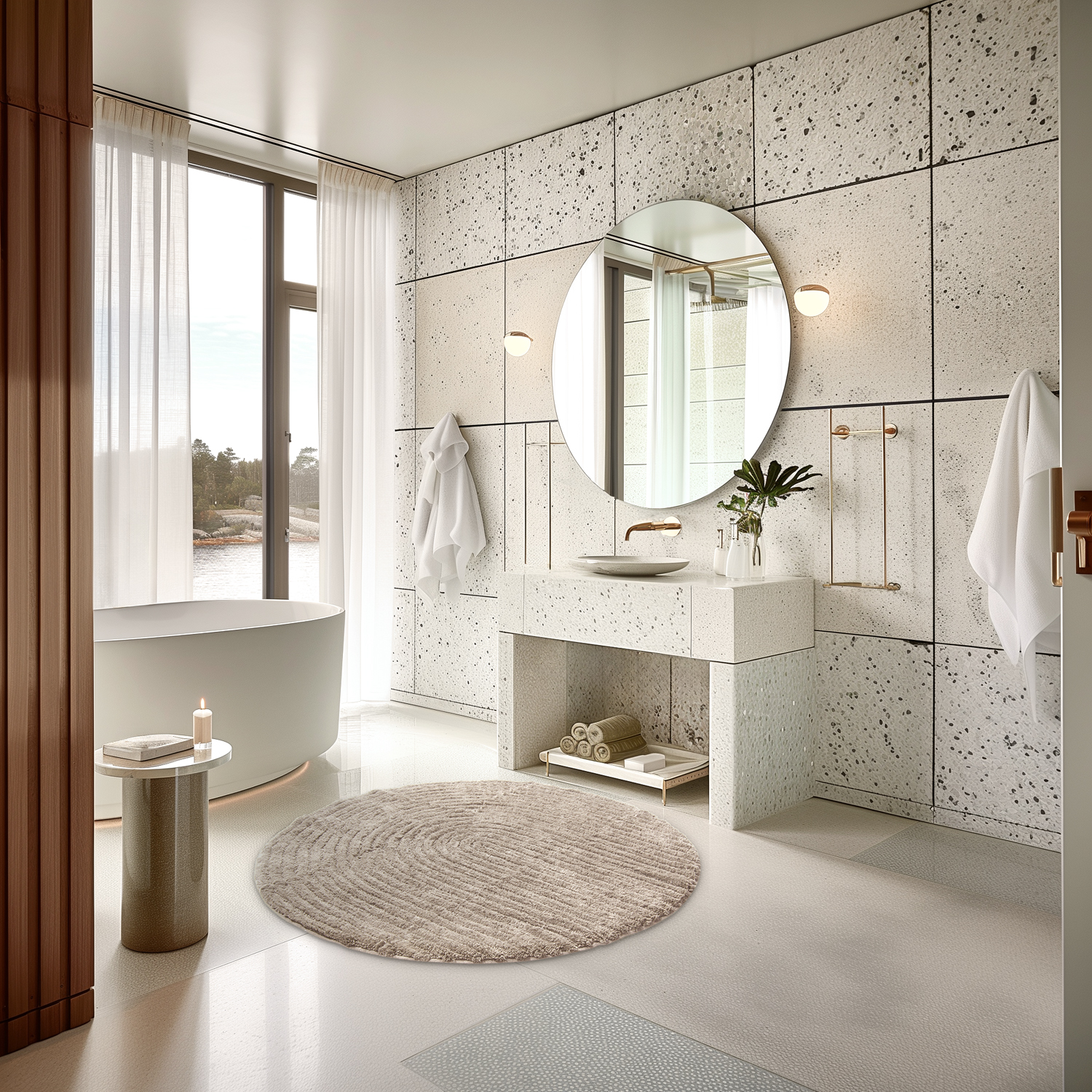Ronde Badmat - Evena (beige)