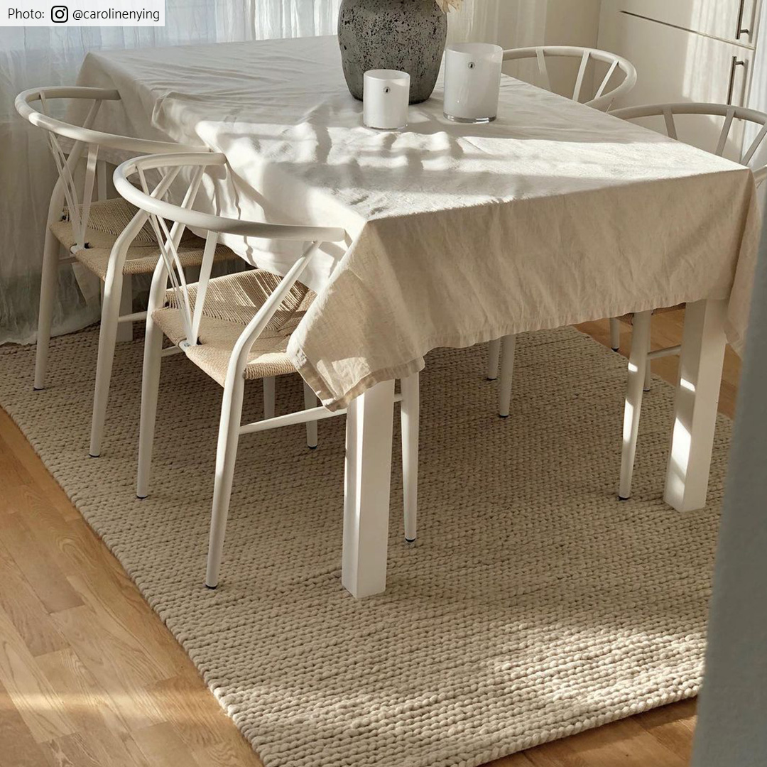 Plat geweven vloerkleed van wol. Wollen vloerkleed met dunne, mooie snit. Geweldige kwaliteit. Makkelijk te verplaatsen. Ligt stevig en plat op de vloer. Geeft een gevoel van originaliteit.
