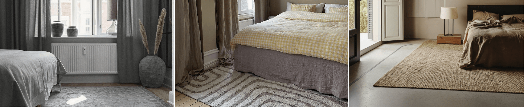 Naast de grootte is ook het soort materiaal belangrijk bij de keuze voor een goed vloerkleed slaapkamer. Ook hier is er niet één beste keuze, maar hangt het van jouw persoonlijke voorkeur af welk tapijt het best geschikt is. We zetten de belangrijkste eigenschappen van enkele populaire materialen voor slaapkamertapijten graag voor je op een rijtje. Een van onze bestsellers is het hoogpolig tapijt. Het geeft namelijk een heel zacht en comfortabel gevoel, wat perfect aansluit bij de rust die je slaapkamer moet uitstralen. Een bijkomend voordeel is dat de met warmte behandelde synthetische stof volledig pluisvrij is. Heb je liever een tapijt dat gemaakt is van een natuurlijk materiaal? Kies dan voor bijvoorbeeld wol, sisal of katoen. Het grote voordeel van wol is dat het een goed isolerende stof is. Daardoor geeft het in de winter warmte af terwijl het in de zomer juist de koelte van de vloer doorgeeft. Bovendien is het antistatisch en voorkom je een onaangename schok in de ochtend als je voeten het tapijt raken. Ook het materiaal sisal heeft deze eigenschap en is bovendien aan te raden als jij of je huisgenoten last hebben van allergieën. Een katoenen vloerkleed is dan weer heel licht. Daarnaast is het gemakkelijk schoon te maken waardoor het ook erg praktisch is. Een leuke bijkomstigheid is dat er bij een katoenen tapijt een ruime keuze is aan kleuren en patronen. Een zee aan mogelijkheden dus, het ligt er maar net aan wat jij belangrijk vindt.