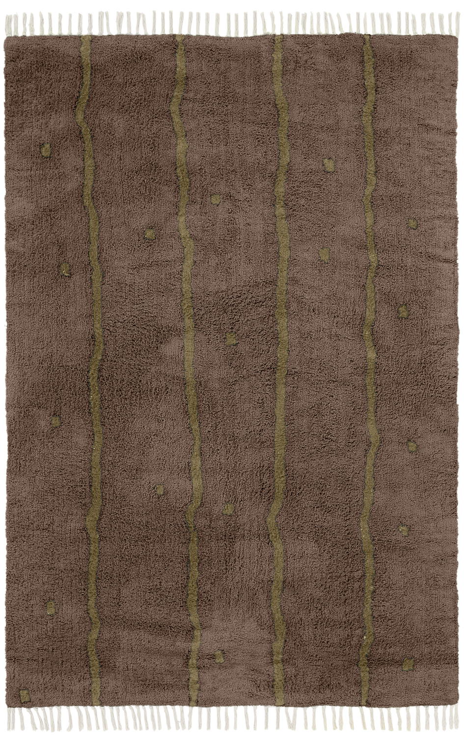 Hoogpolig vloerkleed - Leora Natural Cotton Shaggy (bruin/olijf)