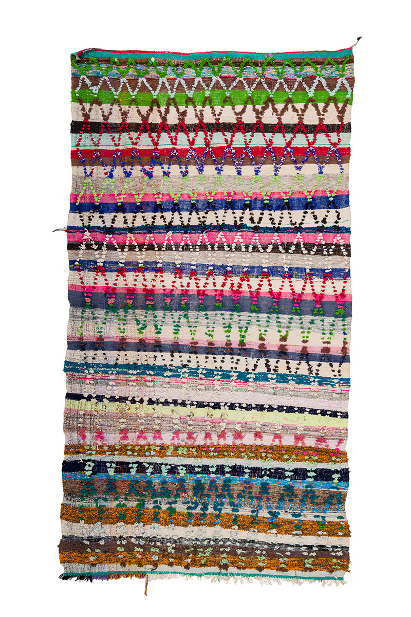 De Boucherouite is een andere soort van fantastische tapijtcreaties uit Marokko. Het Boucherouite-tapijt is een voddenkleed dat gemaakt is van gebruikt textiel, zoals wol, katoen, garen, synthetische vezels en andere textielmaterialen die opnieuw kunnen worden gebruikt. Dit prachtige Marokkaanse voddenkleed is een van de gevolgen van de verandering die zich de laatste tientallen jaren heeft voltrokken op het Marokkaanse platteland, waar de oude nomadencultuur vervangen is door landbouw en andere moderne beroepen op het platteland. Als gevolg hiervan is de exclusieve wol van de schapen, waarvan de Beni Ourain- en Azilal-tapijten gemaakt worden, nog zeldzamer geworden. Hierdoor is het nog belangrijker geworden om gebruikt textiel opnieuw te verwerken, en de vrouwen op het Marokkaanse platteland doen dit op een fantastische manier. De kleuren en het patroon van de Boucherouite-tapijten zijn herkenbaar uit de Azilal-tapijten en net als deze voorgenoemde hangen Boucherouite-tapijten ook in verschillende kunstexposities over de hele wereld.