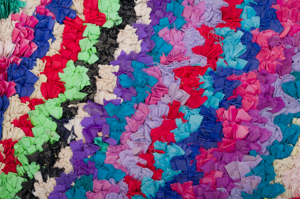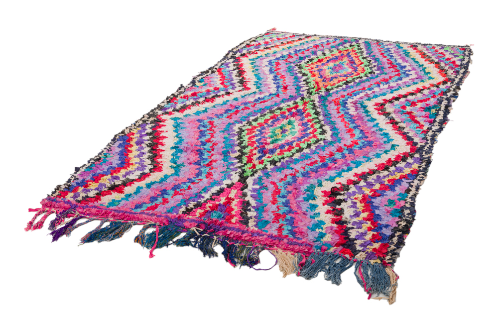 De Boucherouite is een andere soort van fantastische tapijtcreaties uit Marokko. Het Boucherouite-tapijt is een voddenkleed dat gemaakt is van gebruikt textiel, zoals wol, katoen, garen, synthetische vezels en andere textielmaterialen die opnieuw kunnen worden gebruikt. Dit prachtige Marokkaanse voddenkleed is een van de gevolgen van de verandering die zich de laatste tientallen jaren heeft voltrokken op het Marokkaanse platteland, waar de oude nomadencultuur vervangen is door landbouw en andere moderne beroepen op het platteland. Als gevolg hiervan is de exclusieve wol van de schapen, waarvan de Beni Ourain- en Azilal-tapijten gemaakt worden, nog zeldzamer geworden. Hierdoor is het nog belangrijker geworden om gebruikt textiel opnieuw te verwerken, en de vrouwen op het Marokkaanse platteland doen dit op een fantastische manier. De kleuren en het patroon van de Boucherouite-tapijten zijn herkenbaar uit de Azilal-tapijten en net als deze voorgenoemde hangen Boucherouite-tapijten ook in verschillende kunstexposities over de hele wereld.