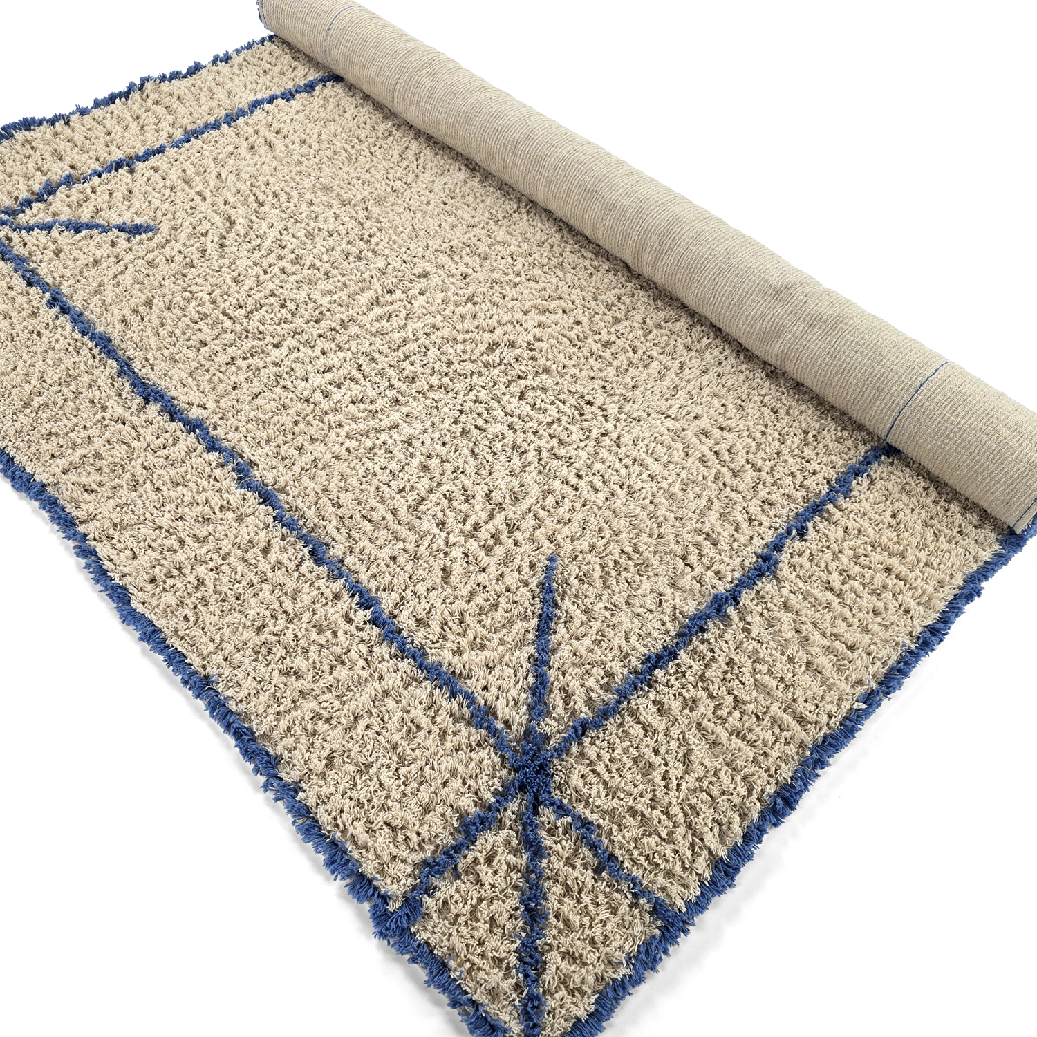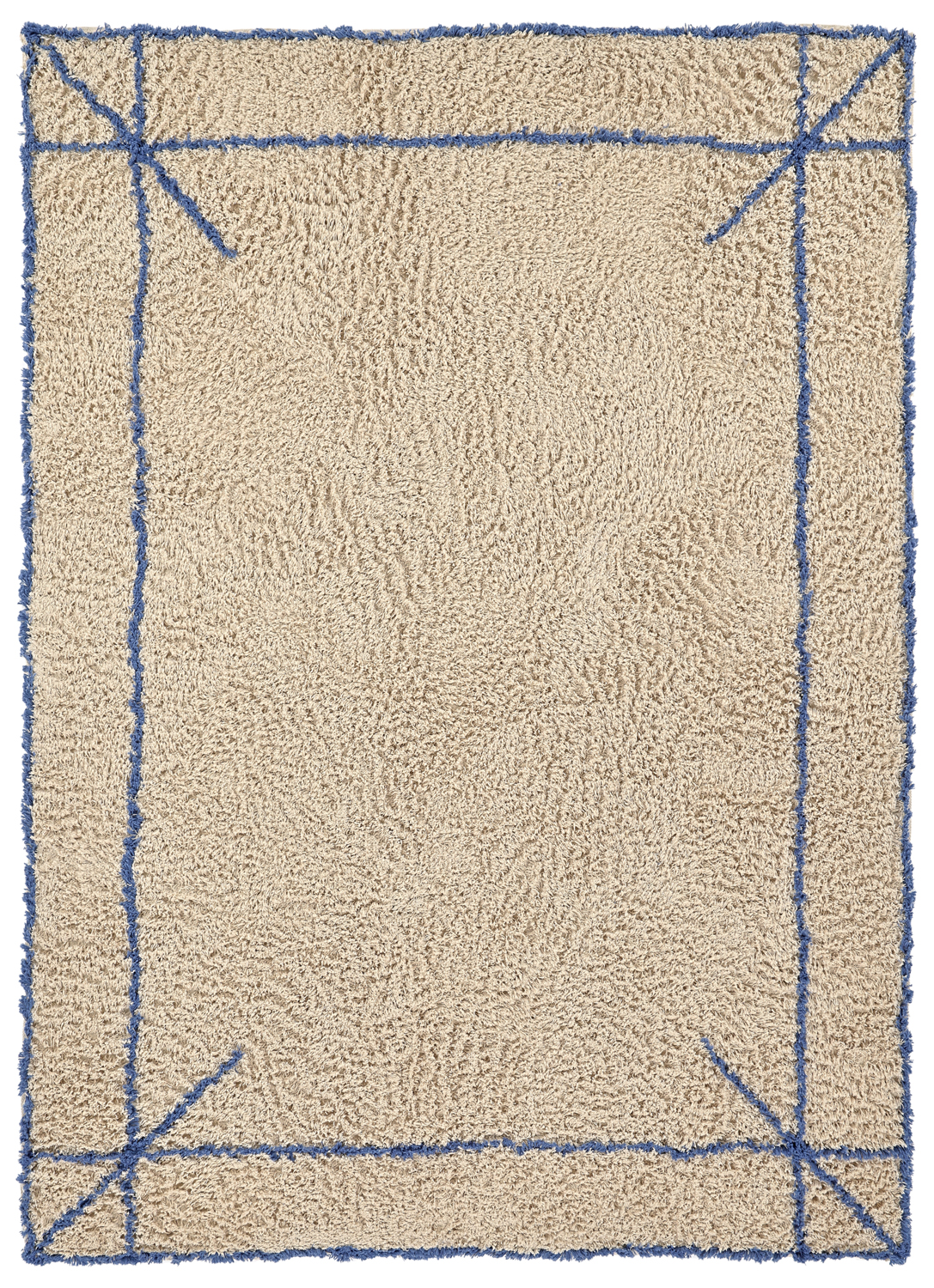 Hoogpolig vloerkleed - Kairi Natural Cotton Shaggy (beige/blauw)