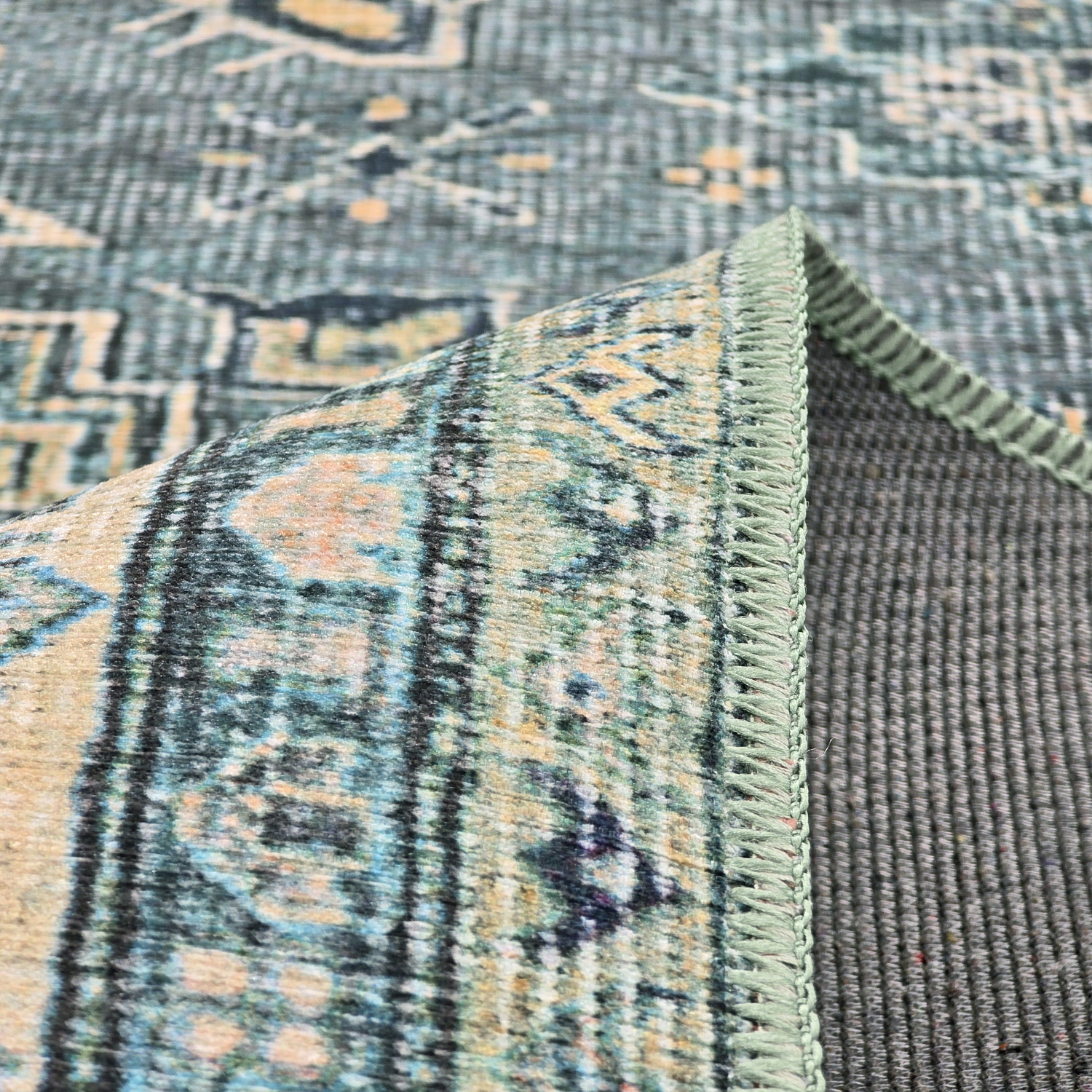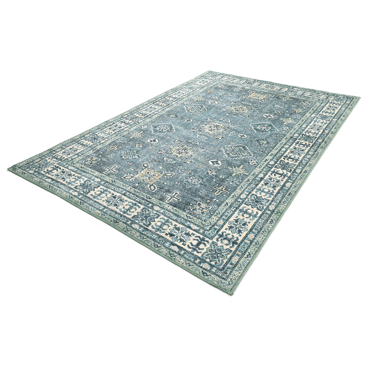 Vlakgeweven vloerkleed - Benaluna (blauw/groen)