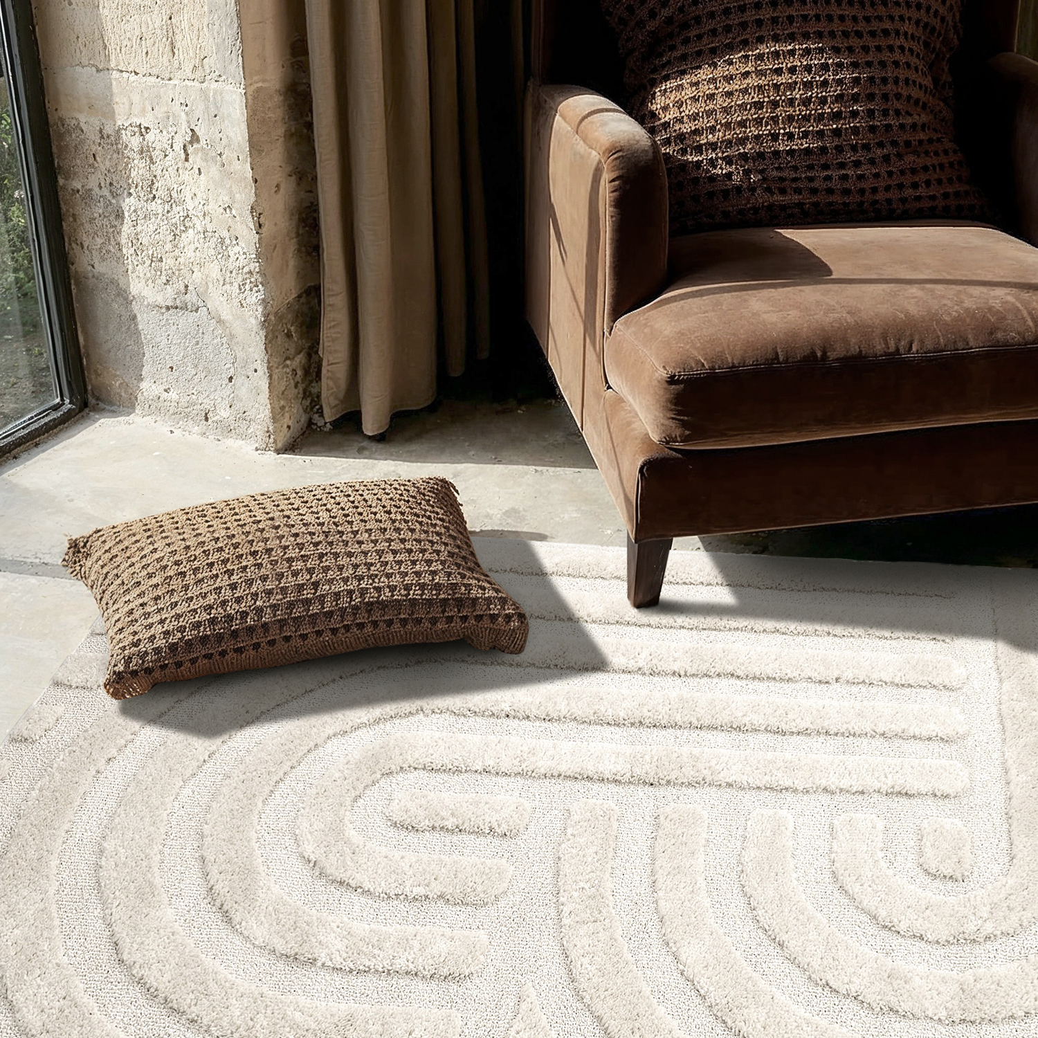 Hoogpolig vloerkleed - Naha (gebroken wit)
